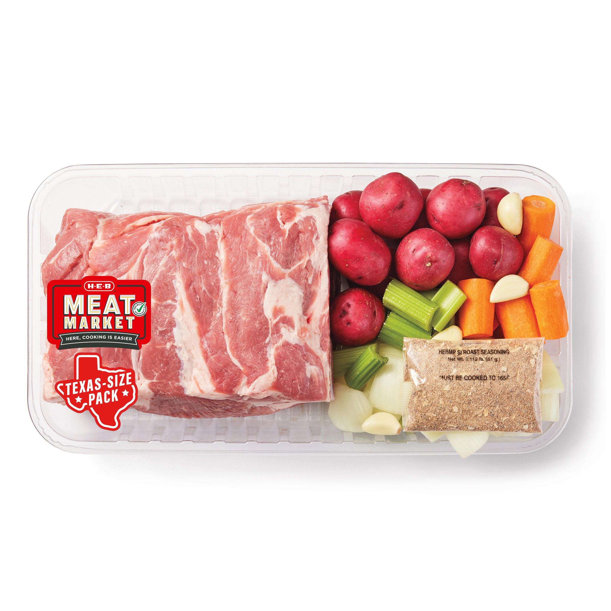 HEB Meat Market Pork Roast Kit BoneIn Picnic Roast & Vegetables Pot Roast Kit Heb our h‑e‑b fully cooked single‑serve beef pot roasts with natural juices will rival the best sunday pot roast your grandmother ever served. These beef pot roasts are lightly seasoned and slow‑roasted to give you a fork‑tender, juicy and delicious dinner that will melt in your mouth. Cooked on a high heat.and perfectly seared with a delicious crust.you will love. Pot Roast Kit Heb.